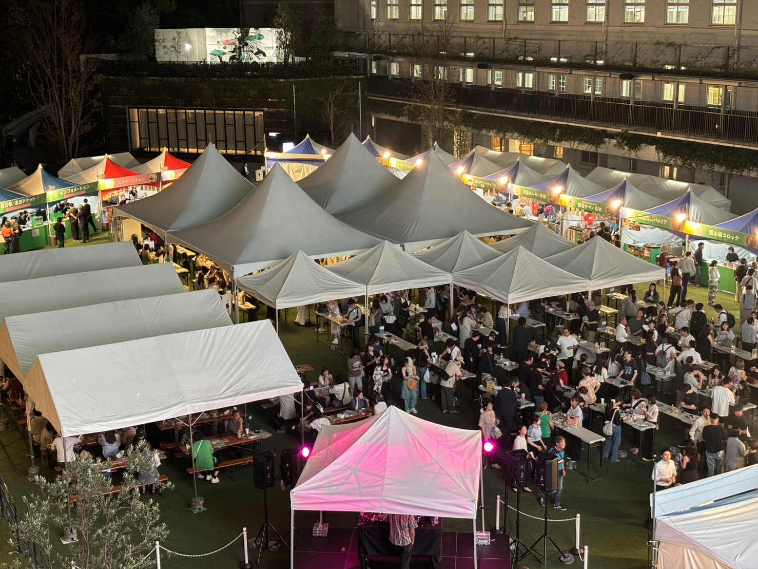 野外シネマとビアガーデンを組み合わせて開催。家族連れやグループが芝生に座って、大きなスクリーンで上映された「トップガン マーヴェリック」、「マンマミーア・ヒア・ウィーゴー」、「ミニオンズ・フィーバー」を鑑賞しながら、ビールやワインなどとともに心地よい時間を過ごしていただきました。
